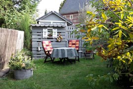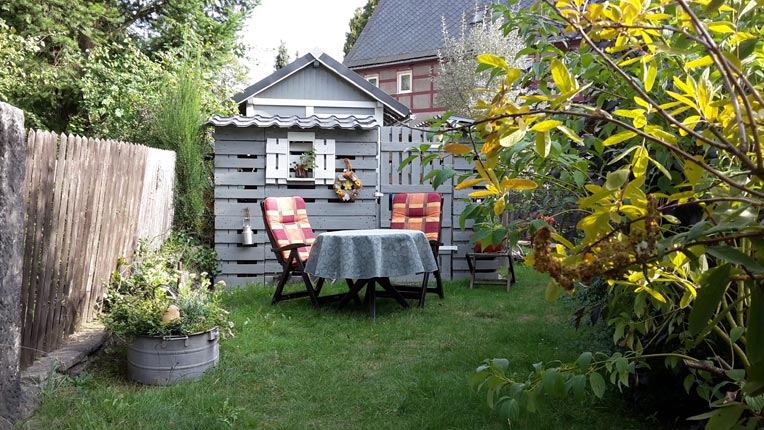Der direkt angrenzende Garten lädt zum entspannten Verweilen am Dorfbach ein.